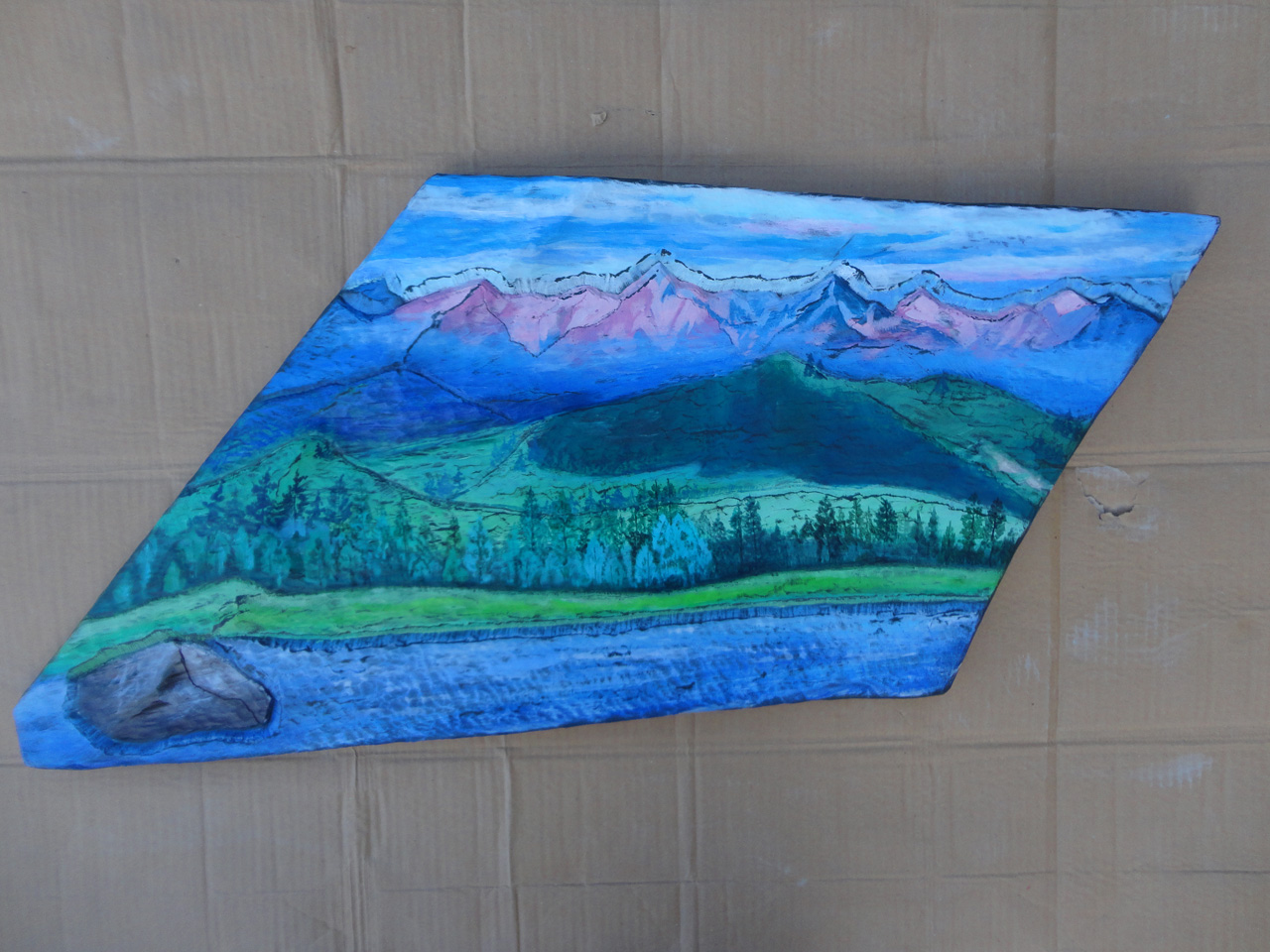 РУМЯНЫЕ ГОРЫКатегория: Монокамни Красочный горный пейзаж: огромный валун в быстрой горной реке, зелёные холмы и "румяные" горы, причудливо освещённые солнцем. Словно маленький уголок для релаксации... Характеристики: Зелёный сланец