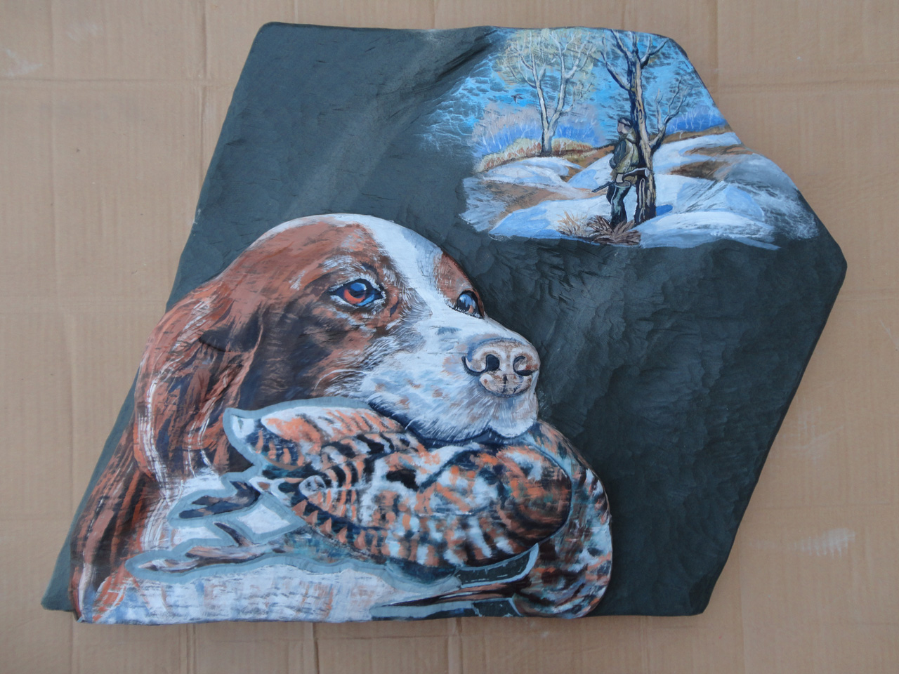 СОБАЧЬИ ГРЁЗЫКатегория: Объемники Настоящая охотничья собака всегда мечтает об охоте, она грезит охотой, живёт охотой, всю себя, без остатка, отдаёт любимому делу... Не случайно поэтому в композиции она на первом плане. Охота с четвероногим другом и помощником более трепетна и чувственна, так как сливаются эмоциональные сферы человека и собаки. И ещё неизвестно кто кому нужнее... Характеристики: Зелёный сланец